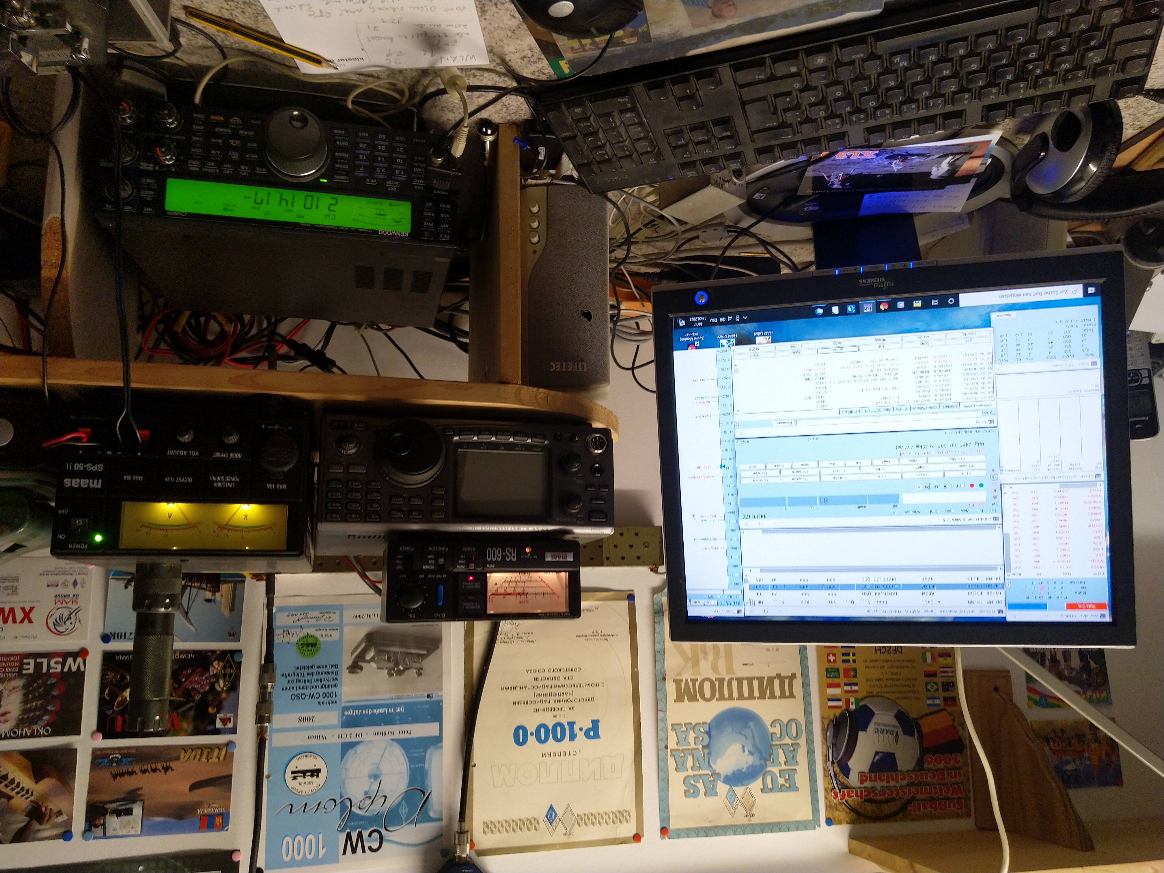 eine K2 kam Weihnachten auf den Tisch. Die Bauanleitung war vorbildlich, so dass ich den Transceiver ohne Probleme zusammenlöten konnte. Dann kam die PA mit 100 Watt dazu und die Matchbox und ein DSP-Filter in der NF. Das war eine gute Wahl. Da der OV auch auf 2 Meter in der Clubmeisterschaft teilnahm, kam noch ein Bausatz eines Transverters dazu. Er hat mir lange und treu gedient, aber die Technik machte Fortschritte. Die Bandbelegung auf dem Display zu sehen war der nächste Schritt. Viele Filtermöglichkeiten und leichte bedienbarkeit. Als wieder mal mehr Geld auf dem Konto war, kaufte ich mir den IC-7300 und war